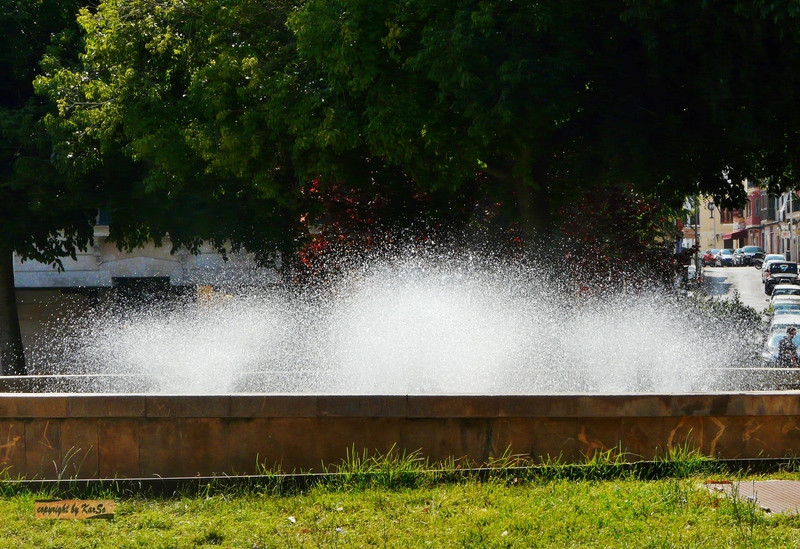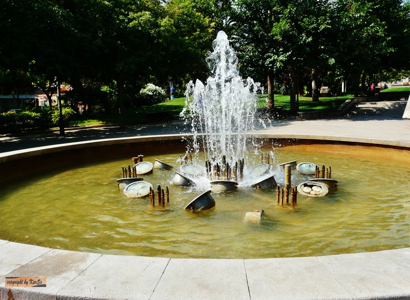 Eine schön angelegte Springbrunnenanlage und großzügige Parkflächen erwarten mich.